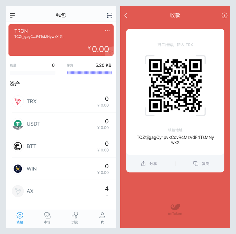 钱包地址的最基本功能是收取和转出数字资产。从交易所或其他钱包向你的imToken地址充币,或者利用该地址转账到其他地址。
